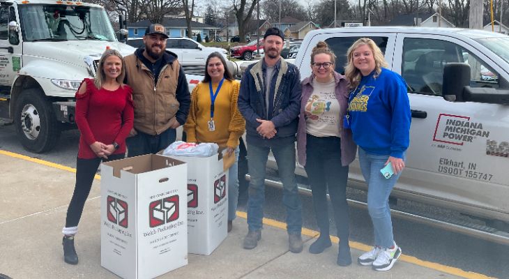 Staff at the Elkhart service center planned for a chili cook-off in December. Sin embargo, el grupo quería hacer más que compartir la comida juntos: querían ayudar a su comunidad. Previously, I&M was approached by Monger Elementary School in Elkhart for more information about a grant to assist migrant families from Venezuela. They were in dire need of household items like laundry soap, toiletries, clothing, etc.