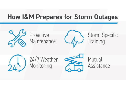 I&M is closely monitoring the weather and is ready to respond if needed. We are encouraging customers to review and practice what to do before, during and after a storm.
